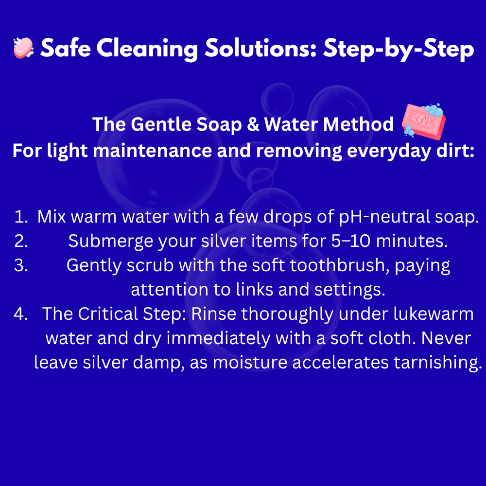 - The Critical Step: Rinse thoroughly under lukewarm water and dry immediately with a soft cloth. Never leave silver damp, as moisture accelerates tarnishing.