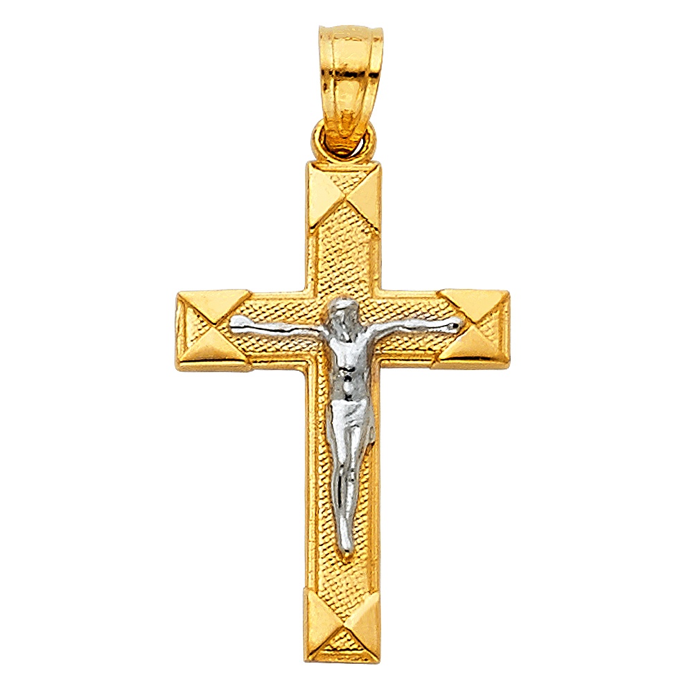 14K Two-Tone Gold Crucifix Jesus Cross Pendant