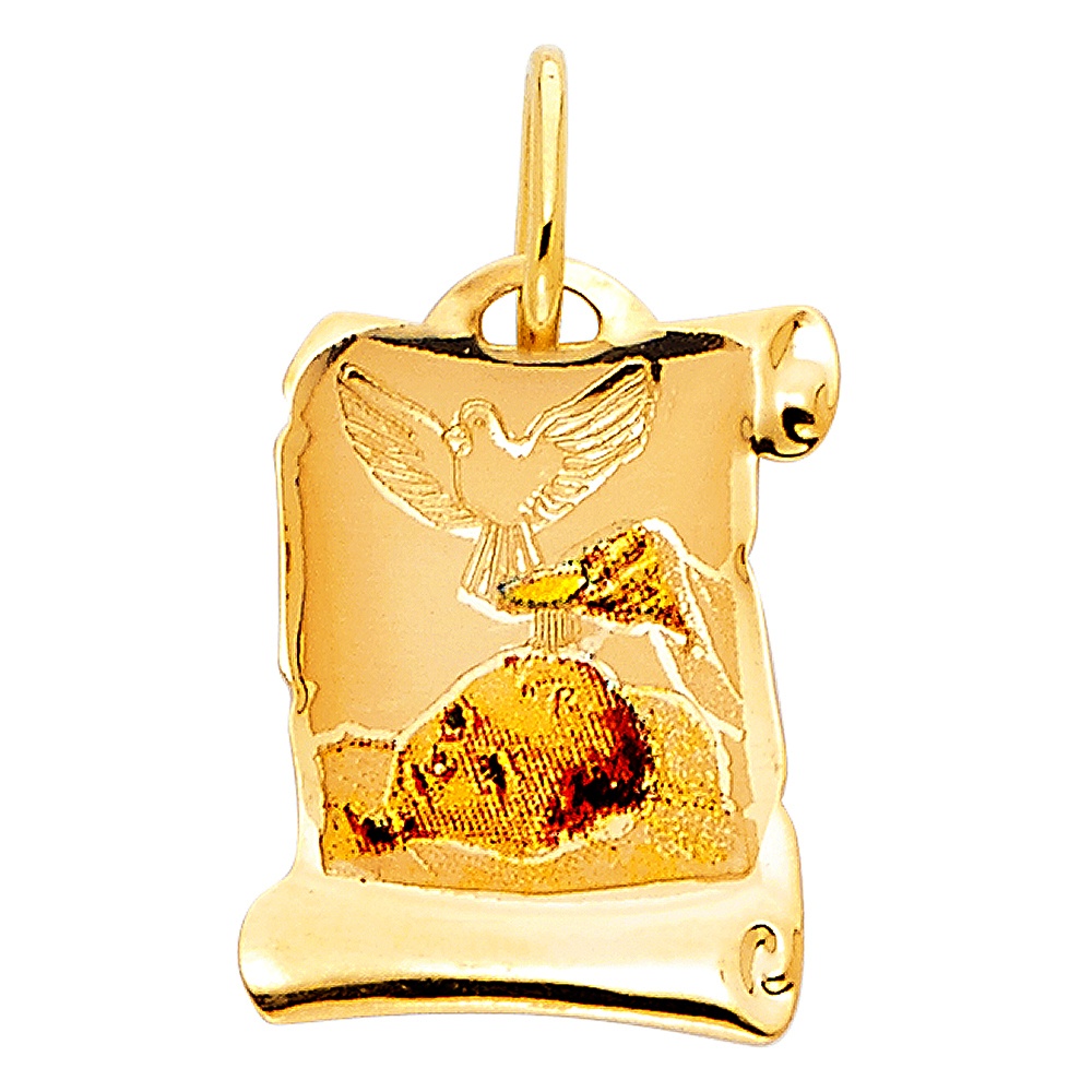 Dije de pergamino del Santo Bautismo para niños en oro amarillo de 14k